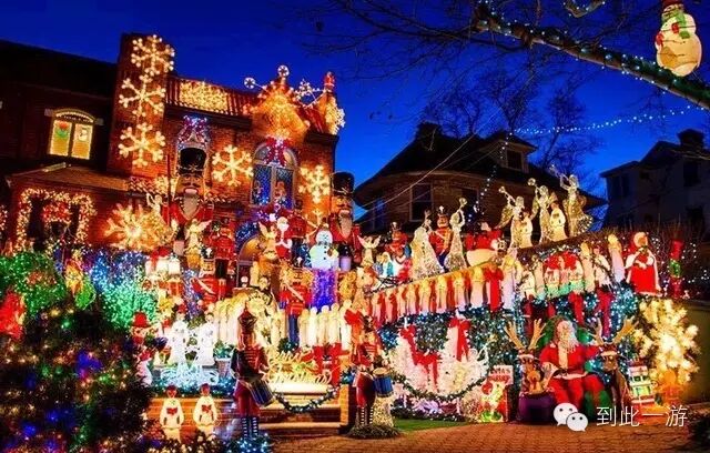 布鲁克林 Dyker Heights 社区的圣诞灯饰,已经脱离美观的境界,基本上,属奇观等级了,每年可吸引数十万人远道前来朝拜。在这几条街道内,每家每户都把庭院布置的热闹极了,除了精心设计,有的还採电动装置,有的则花费上万美元。